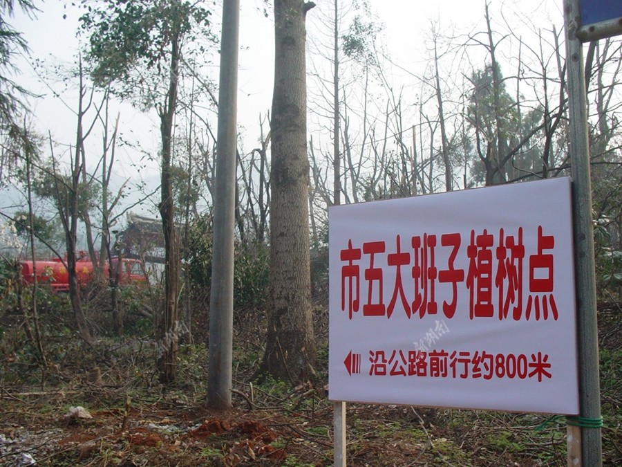 2008年3月12日,郴州市苏仙岭,市委五大班子领导在苏仙岭上植树,恢复被破坏的植被。