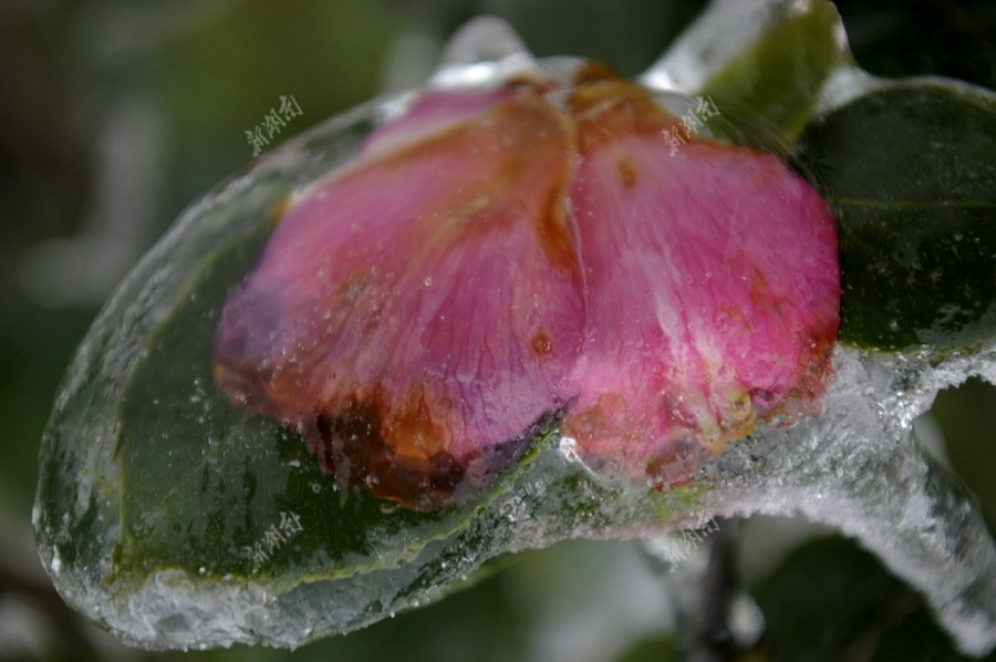 2008年1月26日,郴州市王仙岭公园,冰灾中的一朵花。