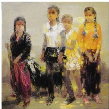 刘世树:看到你最近创作的一些作品,发现你风格上又有变化。比如,《塔奴村的小姑娘》这幅作品画的是尼泊尔农村的留守儿童,这种现实题材的作品给人强烈的感染力。