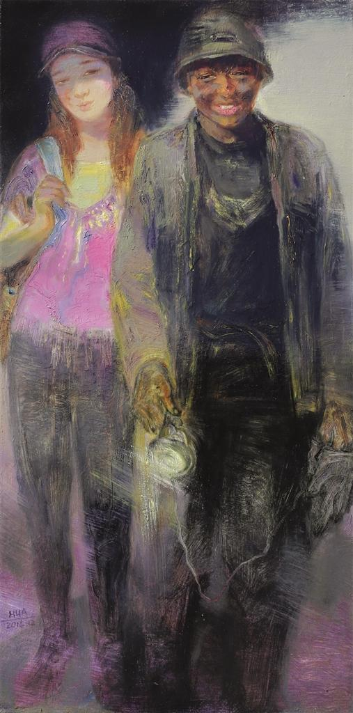 周成华:近些年来,重新审视自我,发现自己精品力作很少,从2015年开始,我的画开始转移到关注现实题材上来。作为女性艺术工作者,要有社会责任感,应该放弃个人小爱,关注生命中的大爱,表现民族审美心理和正能量的创作方向在我的内心中逐渐清晰。前几年,跟湖南油画艺委会的艺术家们一起到湖南冷水江市锡矿山采风,感受特别深,画了一批表现矿工题材的作品。后来,去了尼泊尔,也到陕北考察了留守女性民间艺术家的生存状态,内心有种莫名的感伤。无论是尼泊尔的土著村落,还在我们湘西的苗寨,也有一些留守儿童、留守妇女和空巢老人,这是我目前关注的创作主题,我的能力有限,不能为她们做什么,只能通过绘画作品为她们尽些绵薄之力。