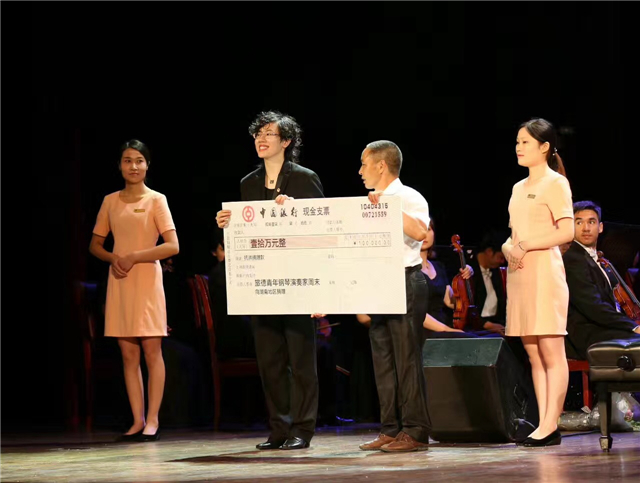 (2017年7月,周末回湘举办专场音乐会赈灾献演,并现场向受灾严重的宁乡黄材镇松溪村捐赠10万元善款。)