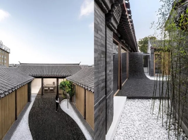 弧线的运用,改变原本四合院的庄重、刻板的印象,开放、活跃的院落生活氛围、起伏的地面连接室内外高差,让内外空间产生新的动态关联。曲线的运用,是建筑产生灵动。旧材料的保留和适当新材料的运用,保留了老建筑的风味。院子是“四合院”这种建筑类型生活乐趣的核心所在。而“扭院儿”就是在维持已有房屋结构不变的条件下,在规整格局之下扭动空间,通过局部关系的微调改变院落空间的气质并满足多样的使用,让传统小院儿能够与时俱进的融入到当代城市生活之中。