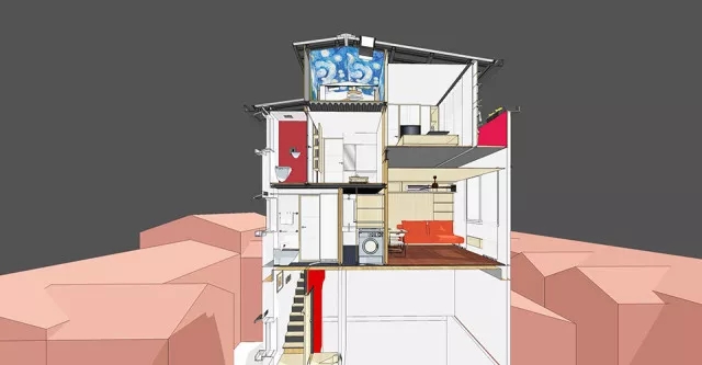 建筑师的改造,使得居民本身,并不是居住在一个密闭的室内,而是居住在由室外环境串联起的一个个小的房屋里面。