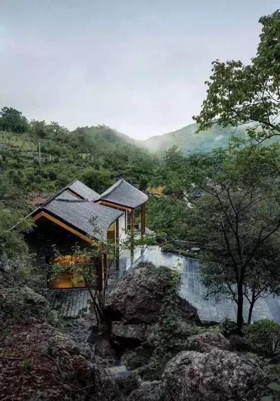 用适当的尺度,将建筑体量化整为零,加建与原有的建筑。在合理布局中相互呼应。石材作为砌筑的边界,用以划分空间的界定,但无形之中也融入了坡地之中。