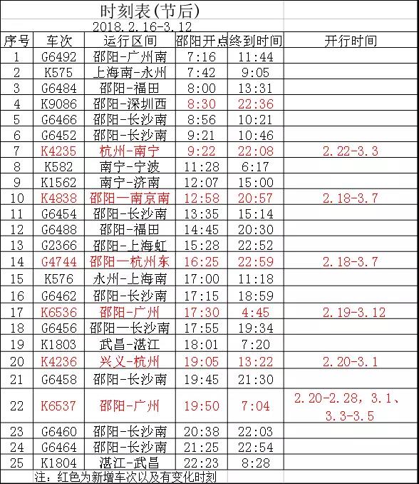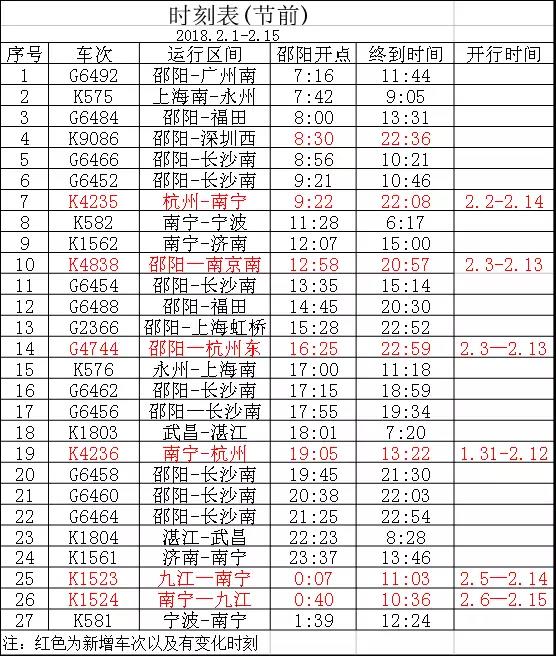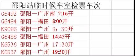小编在此为大家奉上春运期间邵阳火车站最全列车时刻表: