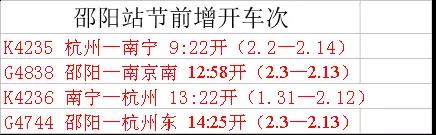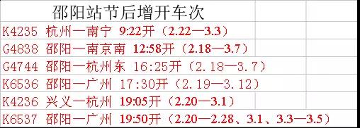 此次春运期间,邵阳站增开临客共计10趟,其中春节前增开4趟,春节后增开6趟。