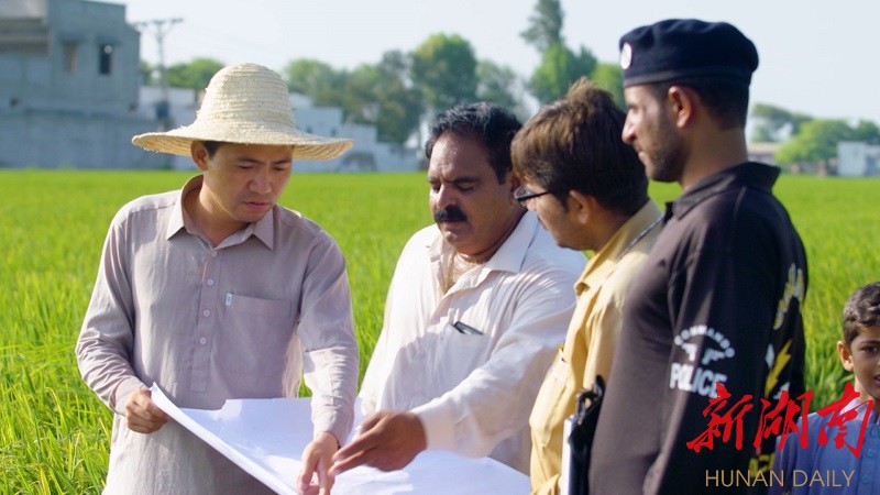 蔡军在巴基斯坦指导当地人种水稻