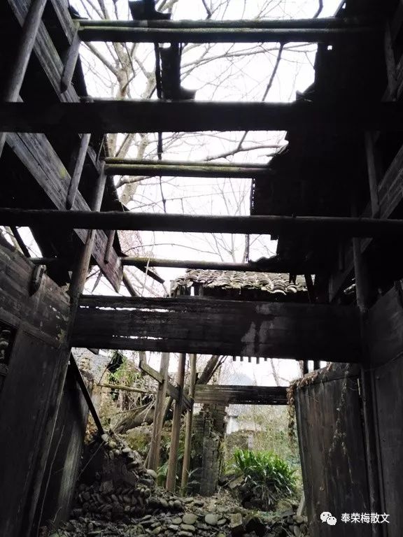 坍塌的老屋架。