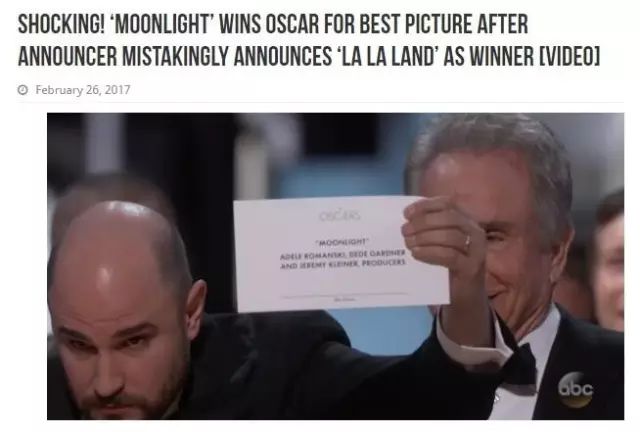 还记得去年第 89 届奥斯卡颁奖典在颁发「最佳影片奖」时出现的史上最大乌龙——错将该奖颁发给《爱乐之城》