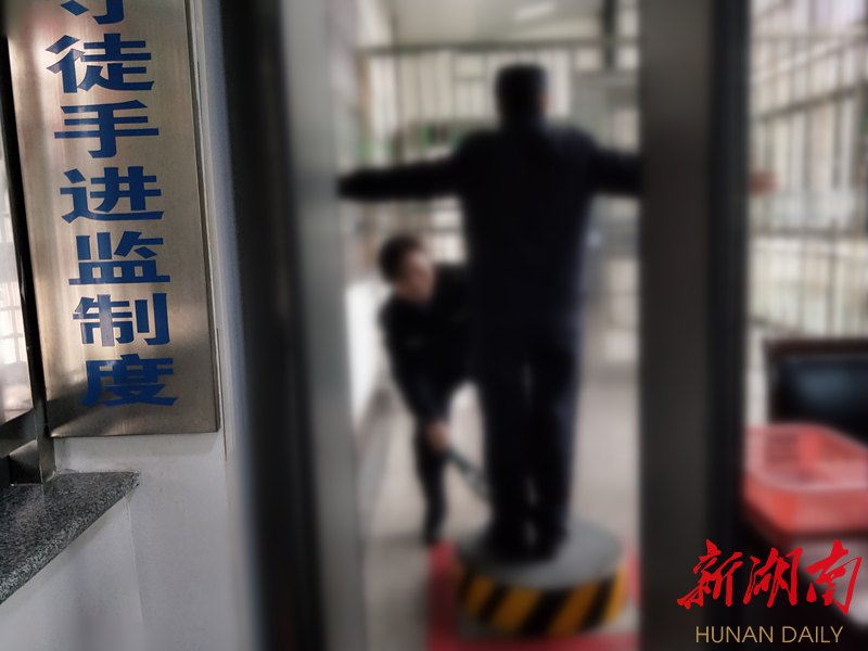 7:20 女警张欣准备进入监管区,按照司法部规定,所有进入监管区的人都要接受“机场式”安检。