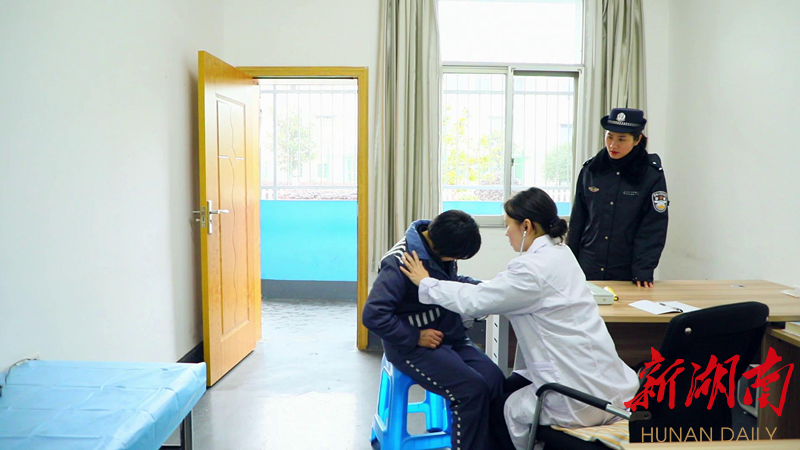 9:28 服刑人员张某报告说身体不舒服,女警胡蓉立刻送她到监内医务室,经过医务室医生的仔细检查,确定她是肠胃着凉引起的感冒,马上为她开处方配药。