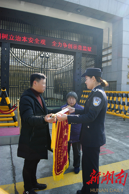 12:00 中午下班,监区长黄晶在监狱大门被人“拦住”,一面饱含服刑人员家属感激之情的锦旗被交到了她的手中。为了社会的稳定与长治久安,再多的艰辛与不易在这一刻都化作了两个字——值得!