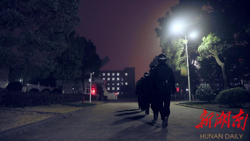 21:50 监狱的夜晚,还有一支特别的“精灵”队伍——特警队,在监管区的每条道路、每个角落来回穿梭,守卫着监狱的平安。
