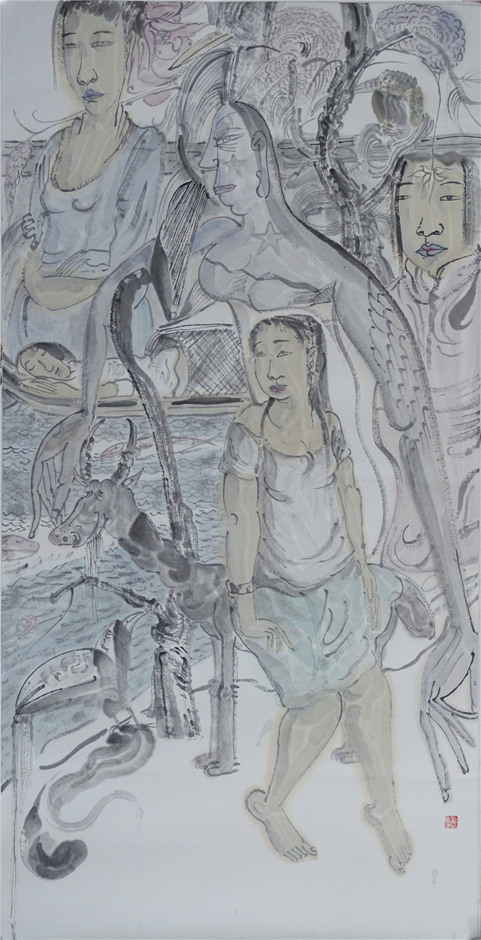 谢丽芳作品《意识是摆渡的舟》(纸本水墨 140cm×70cm 创作年代2017年)