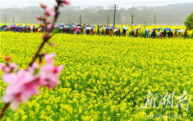 湖南日报新湖南客户端3月17日讯(记者 刘勇 摄影记者 郭立亮通讯员 王勤 刘魁春)很少有一种大面积种植的作物能像油菜一样,让老百姓在饱口福之前先大饱眼福。今天,首届湖南油菜花节在衡阳县库宗桥镇华山村开幕,数万人在春暖花开之际,赶赴田间地头与乡村来一场秀色可餐的“约会”。