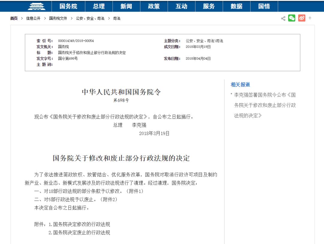 近日,国务院公布《国务院关于修改和废止部分行政法规的决定》(以下简称“决定”),自公布之日起施行。其中涉及了《物业管理条例》中4个条款的修改和1个条文的删除。