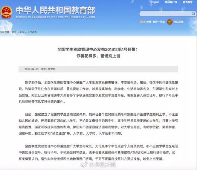 近来,云南昭通发生多起以发放助学金为名,骗取受害人身份证号、银行卡号及手机验证码等信息的案件。提醒:任何单位或个人提供资助,都不应要求在电话中告知身份证号、银行卡号、手机验证码等信息,也不会要求缴纳任何费用或在ATM机和网上银行操作!请提醒学生和家长!