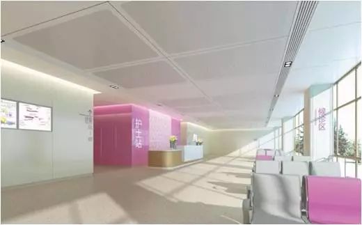 两个科室的空间造型点缀色都选用较为女性化的粉红色。产科的候诊椅质地柔软,座位较宽,方便孕妇起身落座。妇科的候诊椅带皮革软垫,贴近肌肤触感。