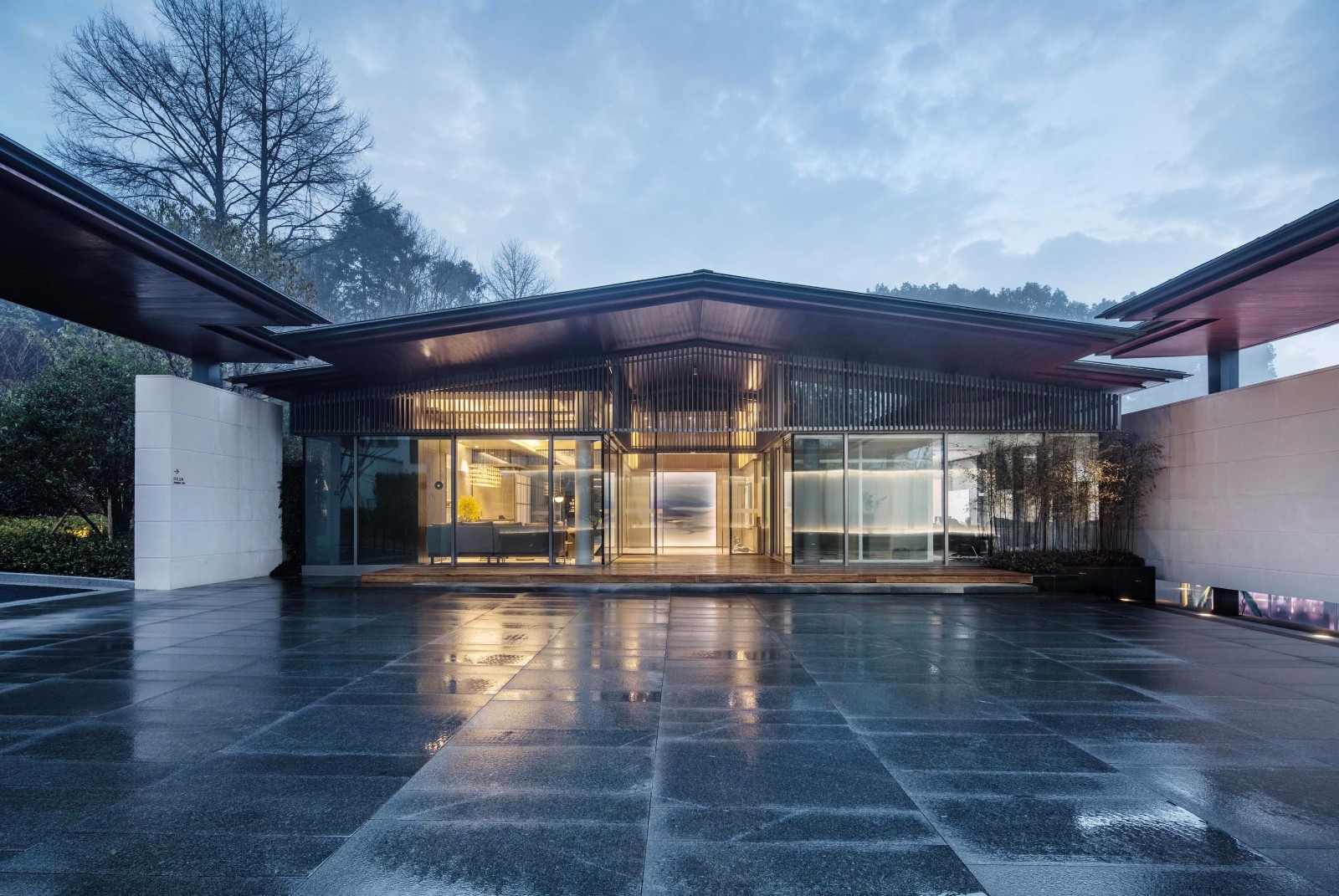 现代建筑质感与传统园林相结合