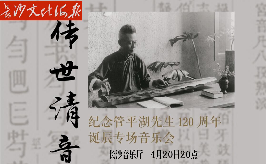 4月20日晚上8点,长沙音乐厅将上演传世清音——纪念管平湖先生120周年诞辰专场音乐会,将演出《忆故人》《平沙落雁》《离骚》《钗头凤》《四大景》《幽兰》《欸乃》《五瓣梅》《广陵散》《流水》等经典曲目。