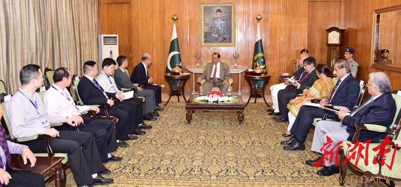 (巴基斯坦总统侯赛因先生接见访问团代表。巴基斯坦总统府供图)