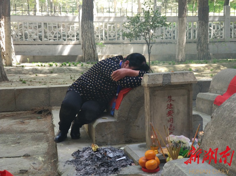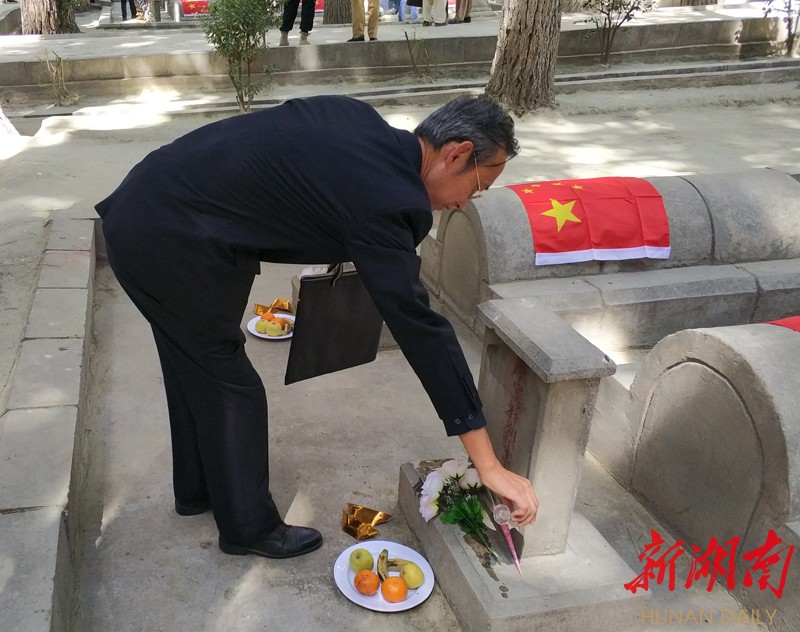 (烈属韩颖祭奠爷爷韩官。姜蔚 摄)