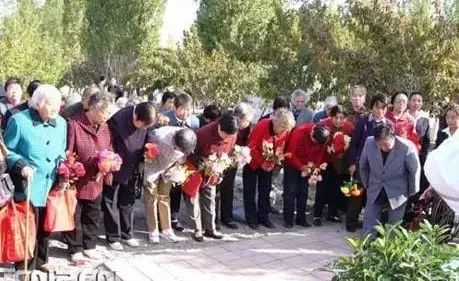 图:当年的女兵们向新疆石河“湘女上天山纪念碑”鞠躬。