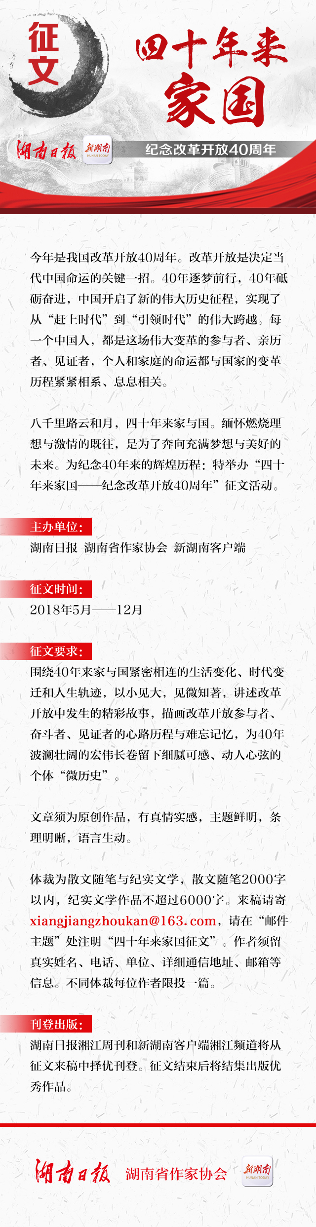 纪念改革开放40周年丨“四十年来家国”征文启事
