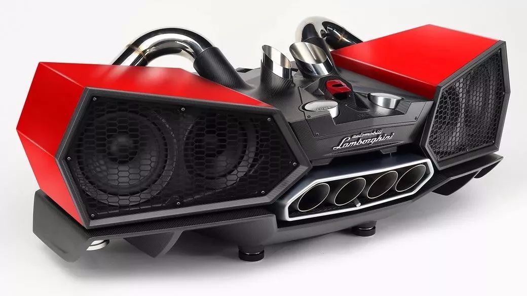 还有这台iXoost与兰博基尼合作的音箱,开关按钮是Huracan的启动开关;四个排气管看起来像是从Aventador SV上卸下来的。