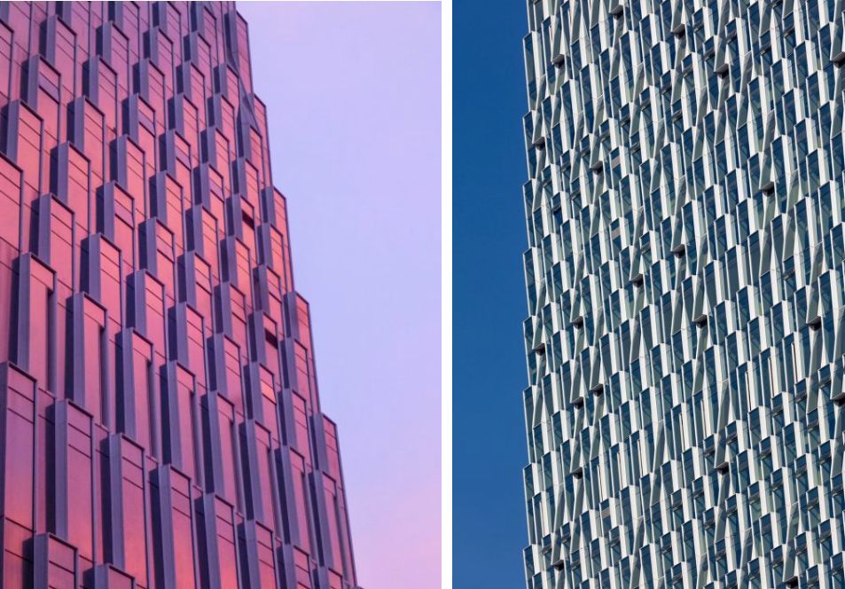 两座塔楼采用了超透明玻璃立面,以最大程度地实现视觉上的连接,位于不同塔楼的讨论室和会议室还能够彼此张望。另外一个重要的设计策略是将建筑的核心筒设置在远离中心的位置,从而创造出更宽敞的会议空间和更多灵活的区域,为每个楼层带来更加丰富多样的体验。