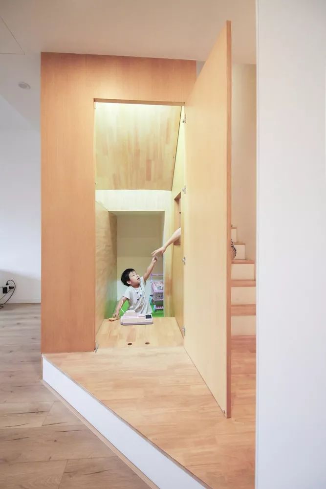 利用屋顶坡度打造的通天大书架,还给小朋友了一个藏身之处!