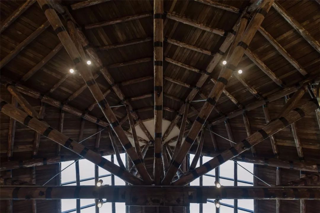 第二,基于粮仓的功能,旧建筑是一个只有通风而无采光的封闭体,除了环布建筑周圈的小通风窗外,欠缺功能改变后所需的基本条件。在不影响旧建筑外廓的前提下,设计团队在建筑的顶部沿人字坡两侧,东西向打开了通长的采光墙,大面积的自然采光由此解决,并带来良好的交流新风;