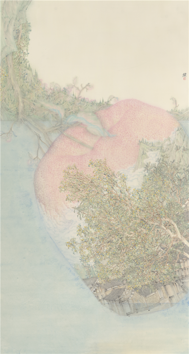 付红作品《红苹果之二》(179cm×97cm 纸本设色)