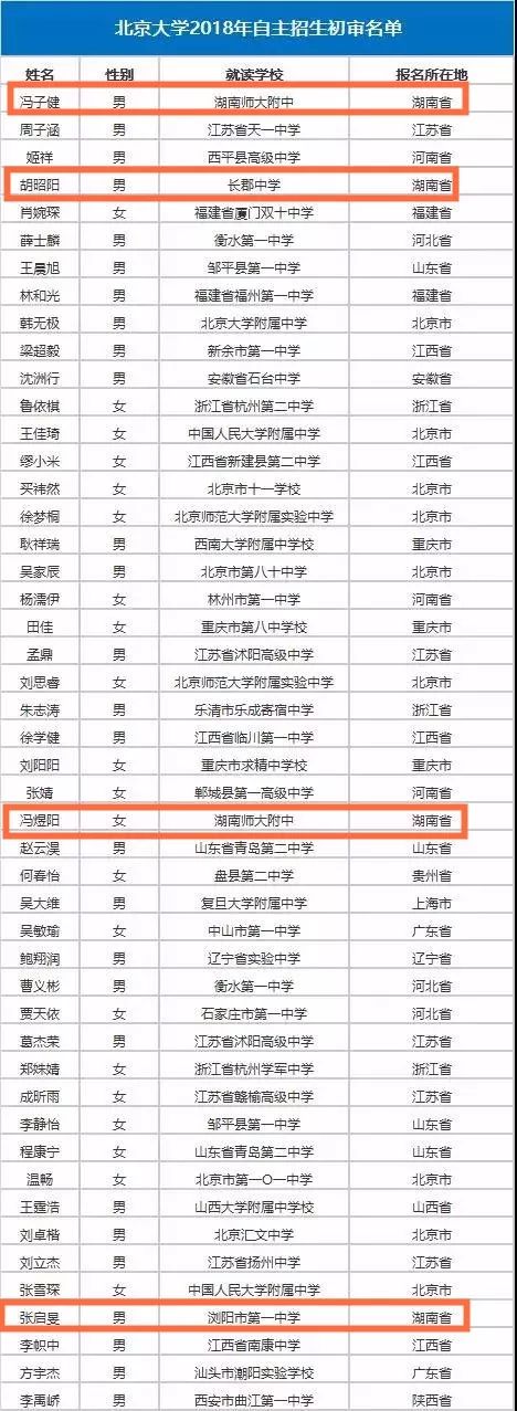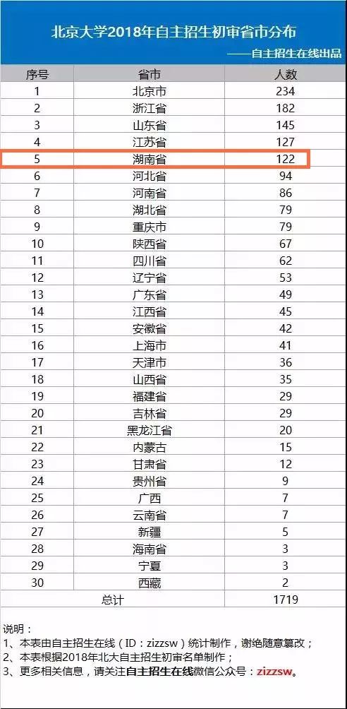 从北京大学公布的名单来看,湖南共有122人通过初审,总人数位居全国前五。