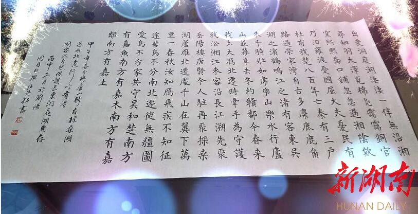 (《出发采桑湖》书法作品,现存于东洞庭湖自然保护区。)