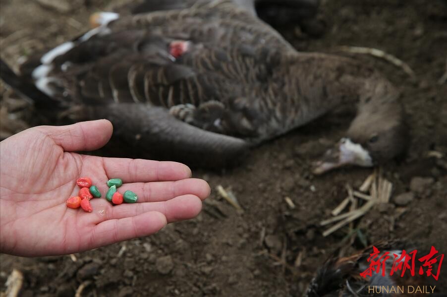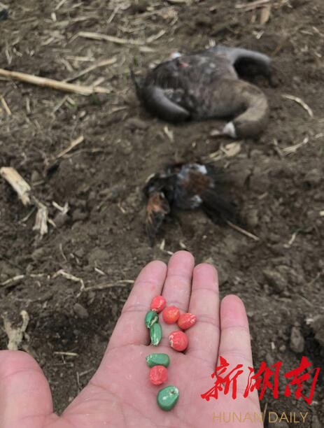 面对鸟类意外死亡,岳阳作家、鸟友张小章陷入沉思:造成雁类死亡的原因,就是这种包裹克百威的玉米粒,农民不这样处理,似乎无法对待今后发生的病虫害。这是生产关系调整过程中出现的新的“人鸟”矛盾。不能因为重视鸟类保护而忽视正常的农业生产,也不能因为农业新技术运用而影响鸟类生态。