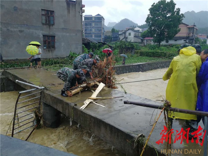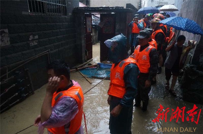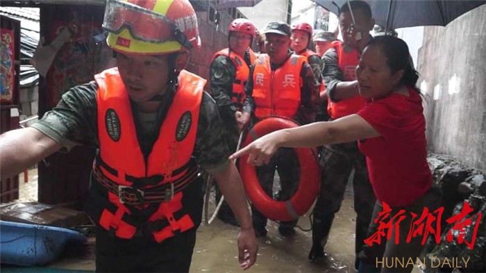 “灵溪镇北门村有两个孩子被洪水困在二楼,请求救援。”5月26日上午9点10分,湘西土家族苗族自治州永顺县人武部接到求助电话。