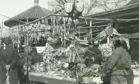 到了前门大街,再笔直向前走去,过了珠宝市以后,就还有上百家大小挂货铺,内容更是丰富惊人。若说琉璃厂像个中国古代“文化博物馆”,这些挂货铺就满可以说是个明清两朝由十四世纪算起,到十九世纪为止的“人文博物馆”。举凡近六百年间,象征皇权的尊严起居服用礼乐兵刑的事事物物,几几乎多集中于这些大小店铺中,正当成废品加以处理。一个有心人都可望用极不足道的低廉价钱,随心所欲不甚费力就可得到。什么“三眼花翎”、“双眼花翎”头品顶戴连同这种王侯公卿名位自来旧红缨凉帽,天青宁绸海龙出锋外套,应有尽有一切随身附件,丹凤朝阳嵌珠点翠的皇亲国戚贝勒命妇的冠戴,原值千金的“翠玉翎管搬指”,“钦赐上用”成分的荷包,来自大西洋的整匹“咔喇”,大红猩猩毡的风帽,以及象牙虬角的“京八寸”烟管,紫檀嵌螺钿的鸦片烟具,全份象牙精雕细磨而成的鼻烟用具,乌铜走银的云南福禄寿三星,总兵提督军门的整份盔甲,王公贵戚手上轻摇的芝麻雕白羽扇,以至出自某某王府祖传三代的祠堂中供奉的写真大像,都在大拍卖处理中,招邀主顾。进出店铺这些洋人洋婆子,好事猎奇,用个十元八元就可得到。天桥一带地摊上,还更加五光十色,耀人眼目,整匹的各色过时官纱、洋绉、板绫、官缎,都比当时流行的三友牌“爱国布”还不值钱,百十种摊在路边土地上,无人过问。皮毛部分则在陈杂皮货堆中,只要稍稍留心,随时可以发现天马玄狐倭刀腿七分旧的料子,还有宋代以来当作特别等级的马具狨座,经过改动的金丝猴炕垫背心,和全头全尾的紫貂北獭……这类物色,十多年前有的只有皇上钦赐才许服用的特别珍贵皮毛衣物,只要你耐烦寻觅,都无不可从一堆堆旧皮料中发现。