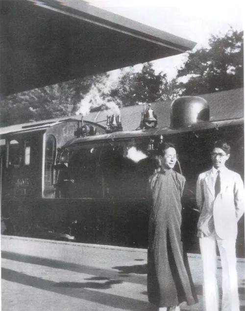 (沈从文1933年9月在北平前门火车站为来参加自己婚礼的黄村生表弟送行)