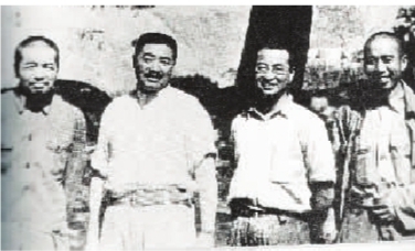陈赓在陕北小河村与彭德怀、贺龙、王震合影。