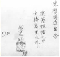 胡志明在赠给陈赓的照片后面题词。