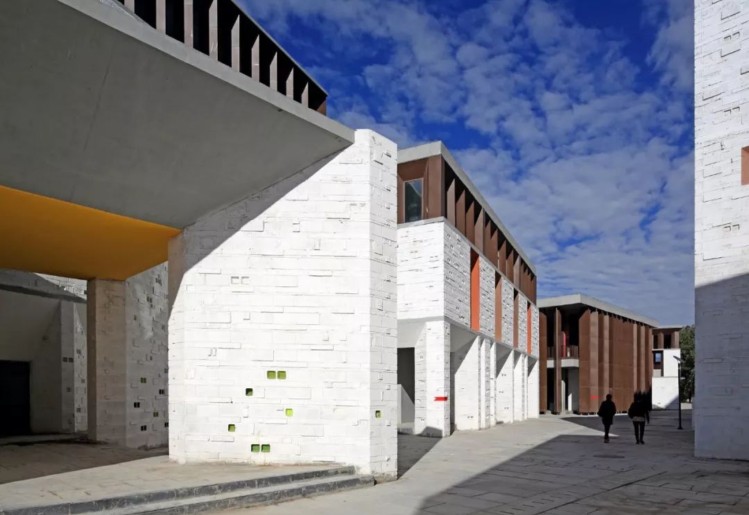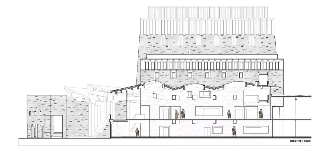 康巴艺术中心的立面造型,特别是开窗组织随层数的上升逐渐加密,在顶层空间采用连续带型窗。