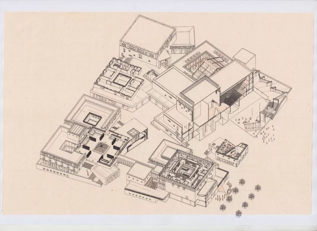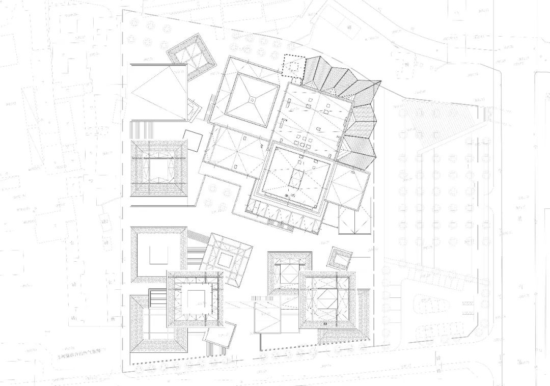 康巴艺术中心的总体规划强调与原有城市环境的协调融合,总体布局自由松散但错落有致,强调与塔尔寺、唐蕃古道商业街、格萨尔广场等周边城市元素的对位呼应。从建筑的密度上与传统城市肌理相吻合,步行街道的尺度也尽力与唐蕃古道商业街相协调。