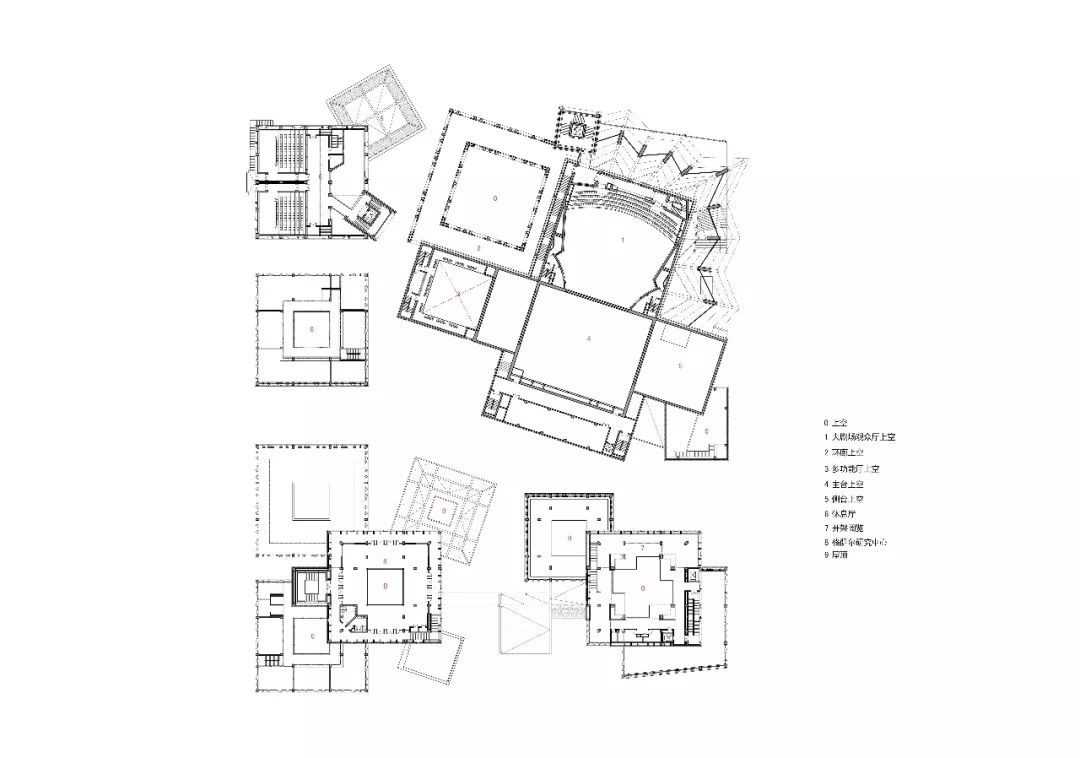 康巴艺术中心建筑的形态,着意表现建筑与周围环境的有机融合的聚落形态。将大剧院的功能化整为零,打散成多个与周边城市尺度相协调的方形体量,形成了一种在剖面上起伏,在平面上错动的体型特征。