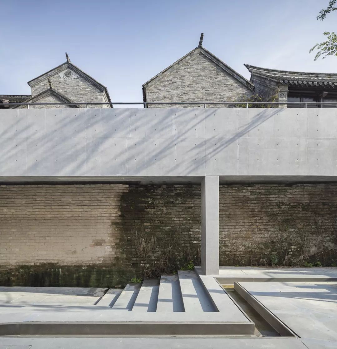 U型玻璃多重漫反射和温润如玉的特性和性格重构建筑空间的光环境。庭园之中,引桥之上,清水混凝土又与古城墙、与传统民居清水砖墙成为对比。三者同画,所呈现的时间层次,其平衡与张力,直至深远。