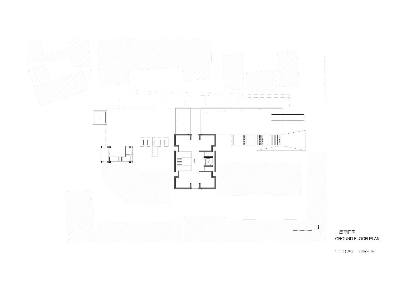 城墙博物馆以现代语境表达传统建筑,隐喻时间交错与链接。博物馆在地面层和地下层两重标高展开。地面层为门厅及序厅,建筑形式、体量与比例均遵循传统形制,以因应其所在回龙窝历史街区的传统建筑与街巷。