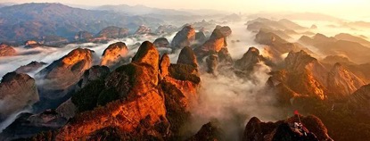 丹霞群峰此起彼伏,高低错落,似成群巨鲸戏水。