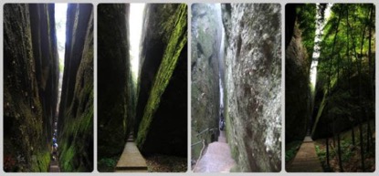 “人在缝中如入地,幸被丝亮辨青天”。全长238.8米,两侧石壁最窄处0.33米,号称世界一线天绝景。