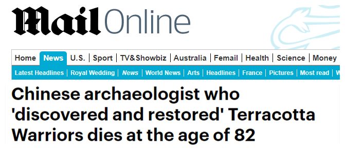 英国《每日邮报》发文:发现并修复兵马俑的,中国考古学家去世,享年82岁。