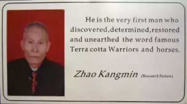 ▲赵康民的英文名片:发现、鉴定、修复、挖掘兵马俑第一人